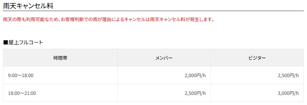 ・屋外コート利用は基本、施設側から天候(雷を除く)が理由で中止することは御座いません。